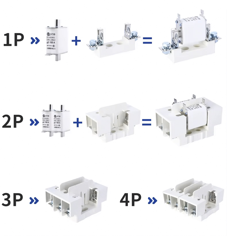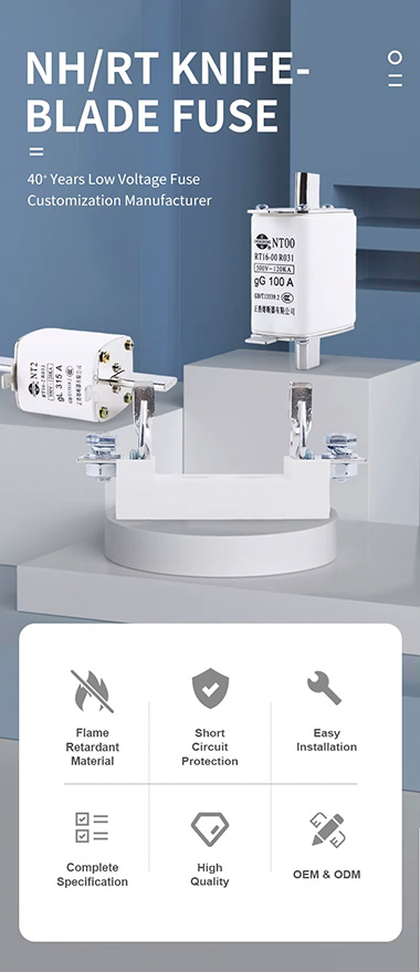 O porta-fusível de lâmina de cerâmica de alta quebra NT00 AC 160A 500/690V de baixa tensão personalizado é projetado para proteção de circuito segura e eficiente em aplicações industriais e comerciais. Este suporte é feito sob medida para acomodar fusíveis tipo lâmina NT00, garantindo instalação segura e desempenho confiável.