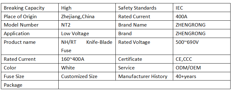 ZHENGRONG NT2 315A 500V Fuse fusíveis de cerâmica quadrados são comumente usados em equipamentos elétricos industriais, sistemas de energia e equipamentos eletrônicos para proteger circuitos contra sobrecargas e curtos-circuitos.